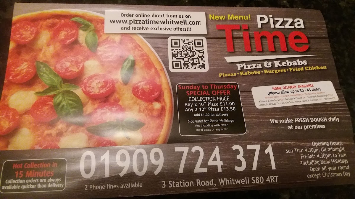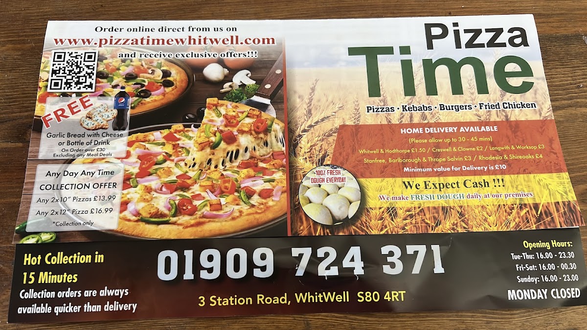 Welcome to PIZZA TIME - Whitwell, your go-to destination for scrumptious pizza and more, located at 3 Station Rd, Whitwell. Their menu is a delightful array of options featuring classic pizzas, calzones, and meal deals that cater to all appetites.